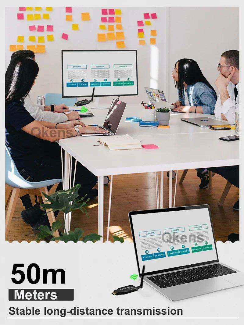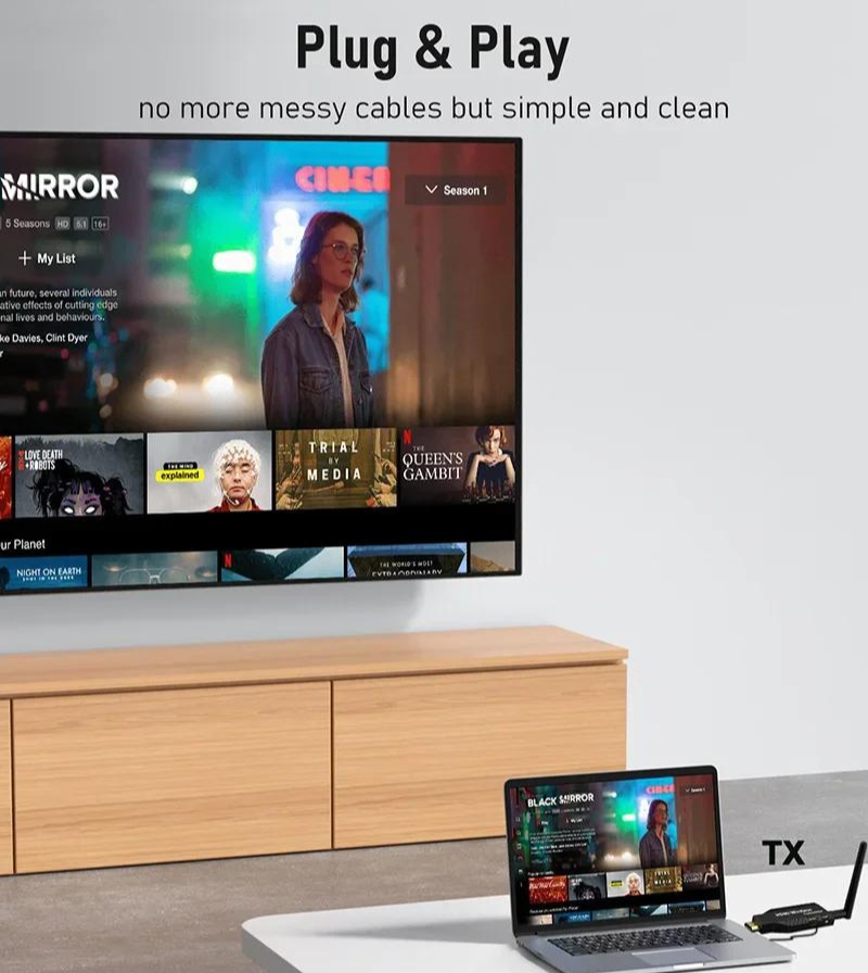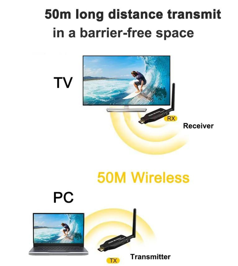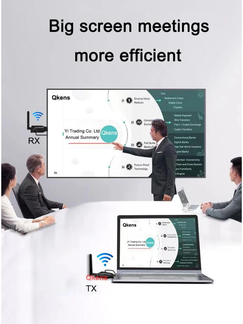 Supporting connections between 1 TX and up to 4 RX units, this extender provides a wireless solution for seamless audio and video sync. With a transmission distance of up to 50 meters in a barrier-free space, enjoy stable, long-distance connectivity, making it ideal for big-screen meetings, efficient learning, and exciting entertainment experiences.