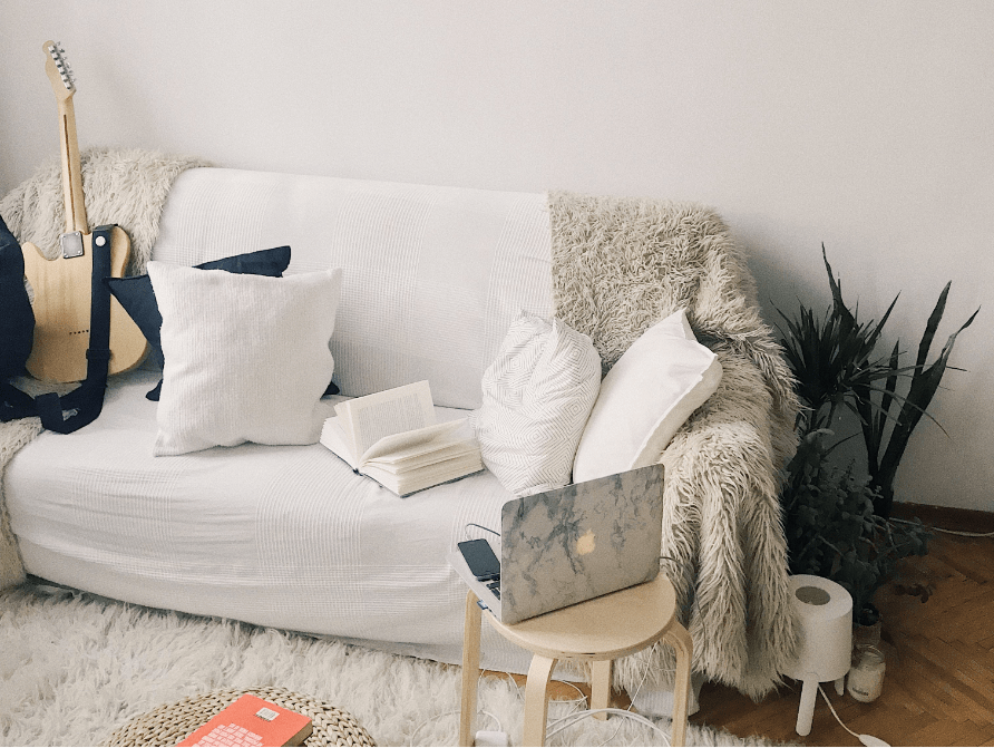 His room, a proper human room although a little too small, lay peacefully between its four familiar walls. A collection of textile samples lay spread out on the table – Samsa was a travelling salesman – and above it there hung a picture that he had recently cut out of an illustrated magazine and housed in a nice, gilded frame. It showed a lady fitted out with a fur hat and fur boa who sat upright, raising a heavy fur muff that covered the whole of her lower arm towards the viewer. Gregor then turned to look out the window at the dull weather.
